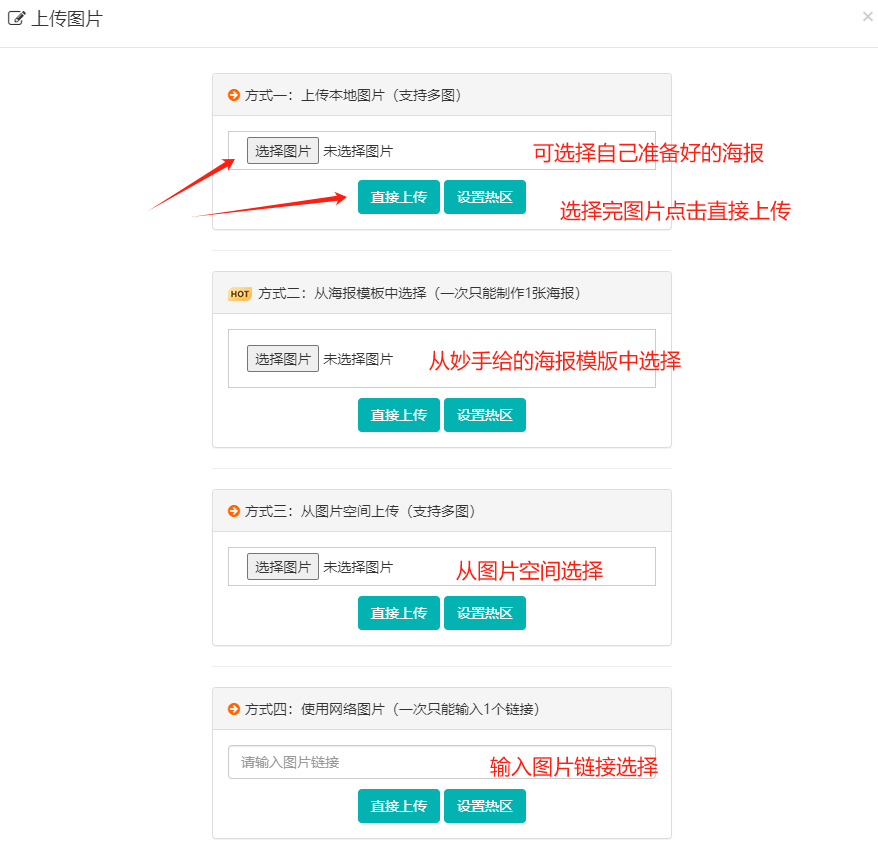 第3步,选择方式1,添加首部图片,可从多种渠道添加海报图片