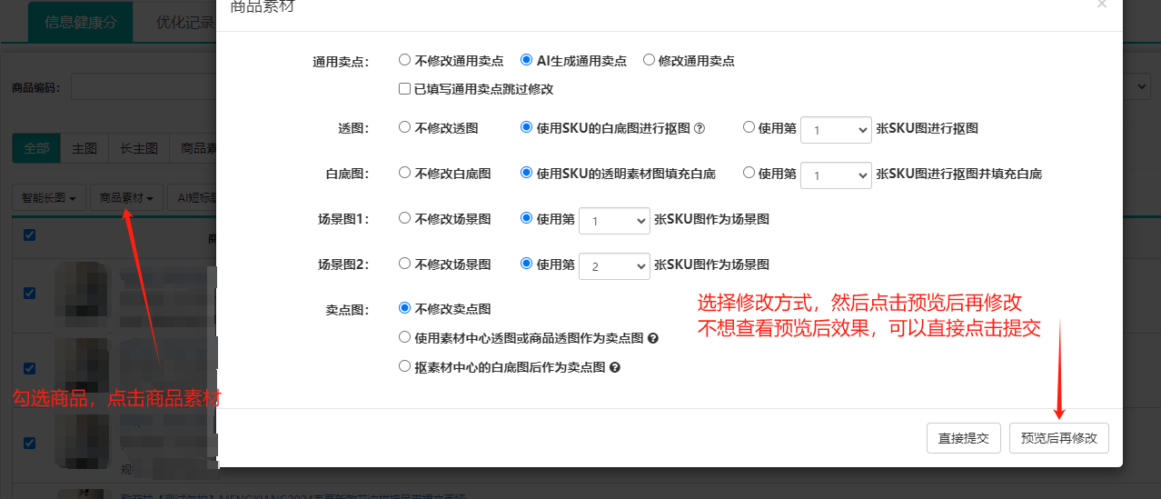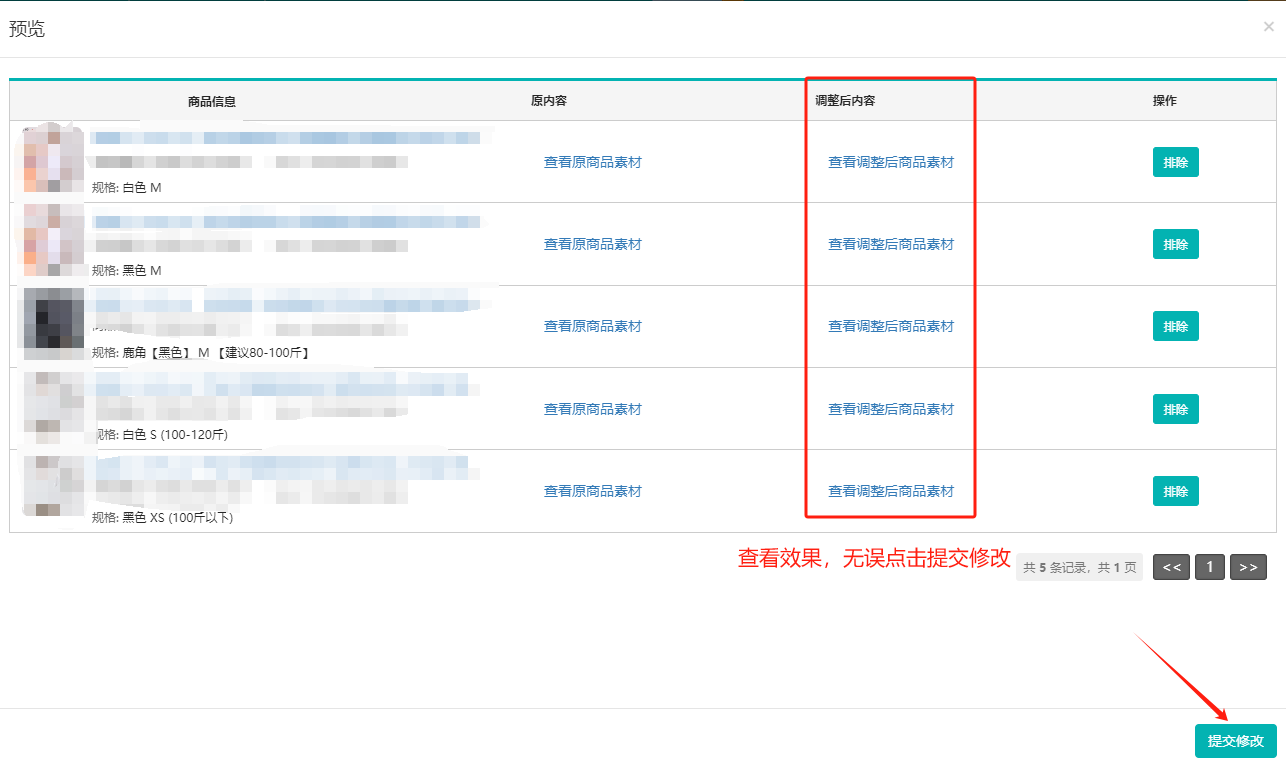 第3步,优化商品,选择修改方式,然后点击“预览后再修改”,无误后点击“提交修改”;不想查看预览后效果,可以直接点击提交