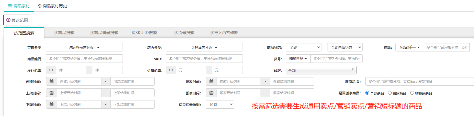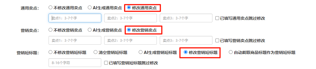 例如:选择修改通用/营销卖点、短标题,则手动进行填写对应卖点、标题
