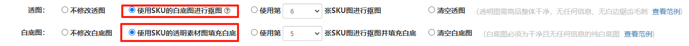 例如:透图:使用SKU的白底图进行抠图(仅对审核通过的SKU白底图进行抠图)