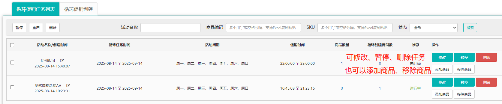第5步,完成并提交,在循环促销任务列表可查看具体任务