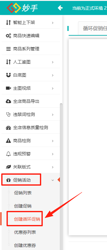第1步,进入妙手软件,促销活动-创建循环促销页面