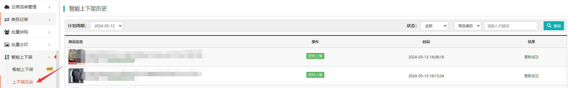 3. 设置好计划,点击【保存上下架计划】按钮;系统按照设置好的执行