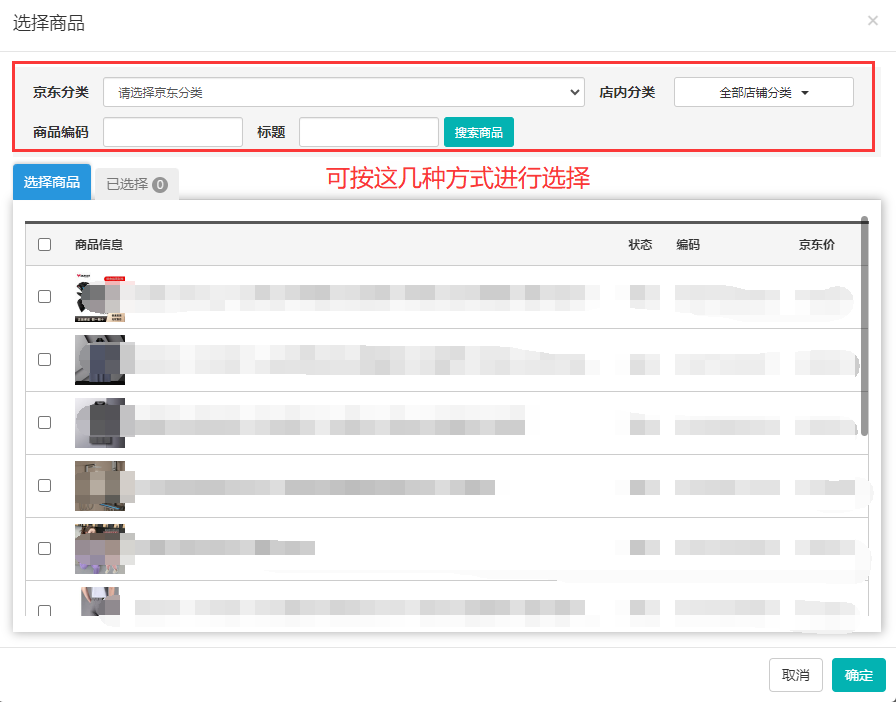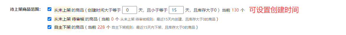 1. 可选三种范围(从未上架商品、从未上架审核的商品、自动下架的商品)