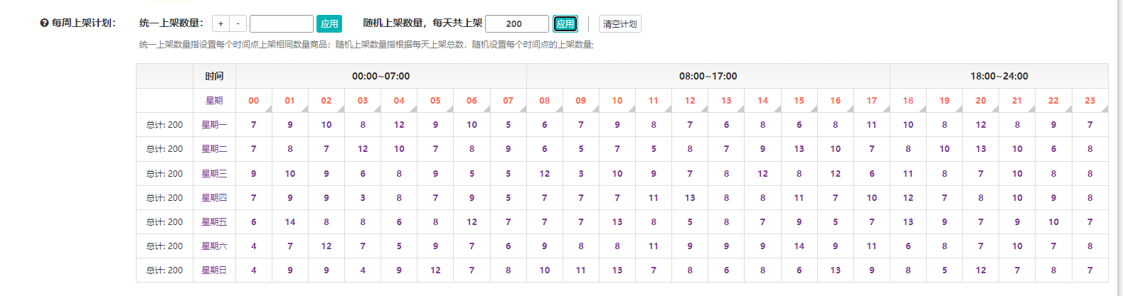 2. 每周上架数量(统一上架数量、随机上架数量)